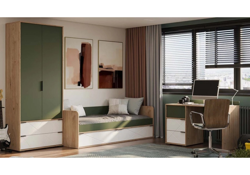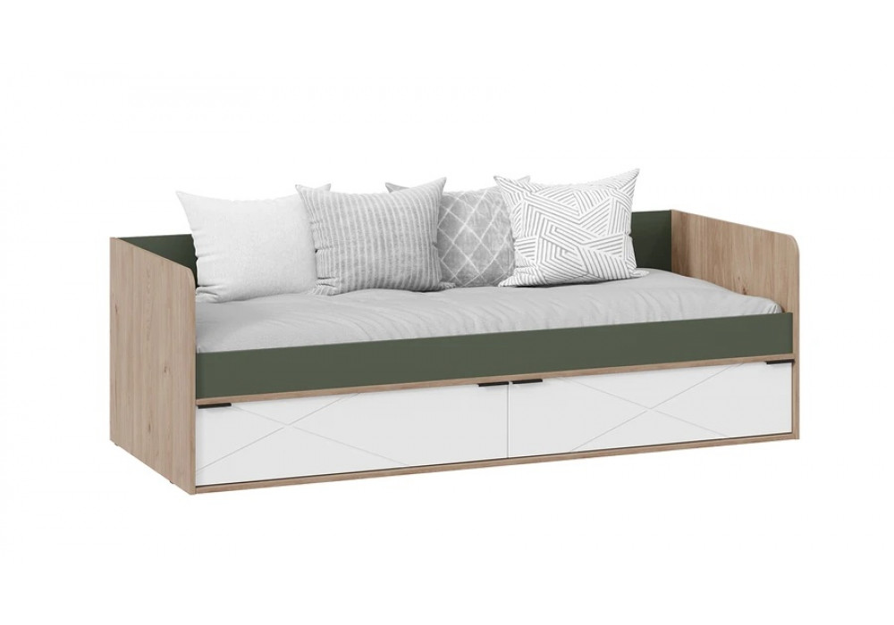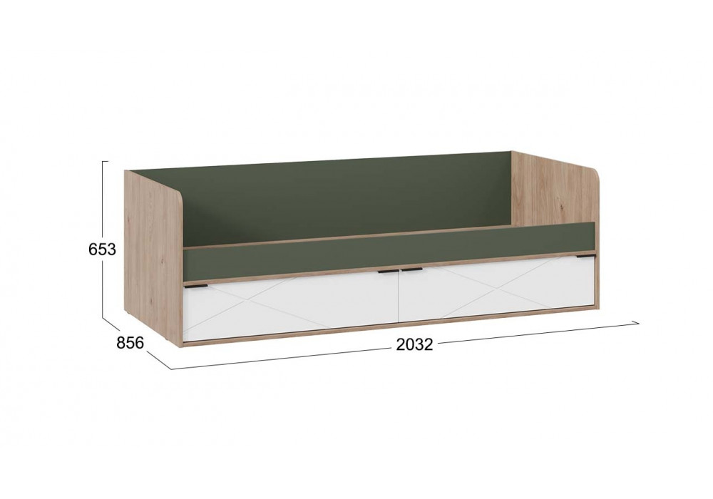 Кровать (с ящиками) «Лео» - ТД-410.12.01 Гикори джексон/Белый матовый/Дымчатый зеленый